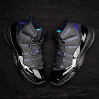 Inspired by Chris Paul’s Air Jordan 12 PE, this is the alternate version of the 11 that was never to be. Though it boasts a familiar look, there are a few subtle differences between sample and retail pairs. This version substitutes the retail’s yellow for the more customary Hornets’ purple. More pops of purple make their way to the insoles, embroidered Jumpmen, and tongue tags, while areas such as the inside tongue, the screen printed 23, and the small Jumpman on the tongue get geared up in Gamma Blue. An additional (yet somewhat unexpected) difference on this pair comes with the laces and lace straps which receive a charcoal finish as opposed to the tonal black-on-black of the retail release.