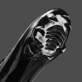 The upper arrives fully dressed in anthracite patent leather, wrapping the mudguard and lower panels in a reflective, mirror-like sheen. Matching mesh tongues and tonal laces maintain the monochrome presentation, while subtle Jumpman branding appears across the tongue, insole, and heel. The low-top construction offers increased ankle mobility compared to the previously released mid-cut football cleat version, making it a more agile option for skill-position players.