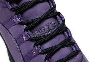 An aged nubuck upper comes dressed in a deep "Canyon Purple" shade, a nod to sunsets over the city’s red rock formations, while its texture reflects the sun-bleached buildings scattered throughout the city. Premium details elevate the look, including a reflective Jumpman logo and piping that mirror the Vegas' famed lights. Below, a gold carbon fiber outsole plate underscores the design, a subtle tribute to the Strip’s opulence, while black and purple tones on the sole unit tie the story together.