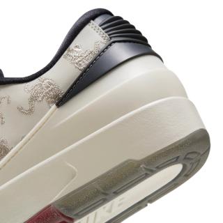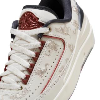 The Air Jordan 2 Low "Year Of The Dragon" distinguishes itself from its alternate colorway with an exquisite design that pays homage to the Lunar New Year. The sneaker features a luxurious sail leather upper, a canvas for the intricate, embroidered gold dragon motifs that sprawl across the entire upper. These dragons, a symbol of power and good fortune in Chinese culture add a touch of elegance and significance to the design.