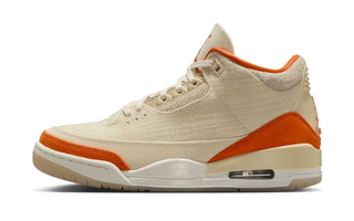 This iteration features a full textile build dressed in a mix of Sail and Starfish Orange. The upper is crafted from natural-looking woven materials, giving the pair a more lifestyle-focused appearance. Hits of orange suede wrap the toe and heel, while tonal canvas panels dominate the collar and overlays. Embroidered Jumpman branding on the tongue and heel continues the signature retro look, while aged Sail midsoles and translucent outsoles bring a vintage feel to the modern update.
