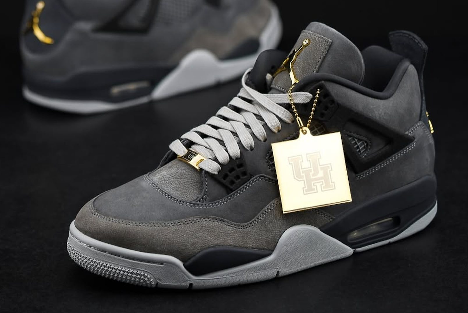 As a Player-Exclusive product, the sneakers won't see a release to the general public. Instead, members of the basketball program are (in theory) the sole owners of these pairs. The Cougars' latest gift from #23 opts for an understated black and grey color scheme. High-quality materials, however, have been deployed across the luxurious retro. Like the 'First Class' edition gifted to select WNBA players in 2023, the Houston-based team's PE features golden Jumpman branding; basketballs on the iconic MJ logo are replaced with shimmering gems, marking the special nature of the shoe. A hangtag donning UH branding rounds out the pair.