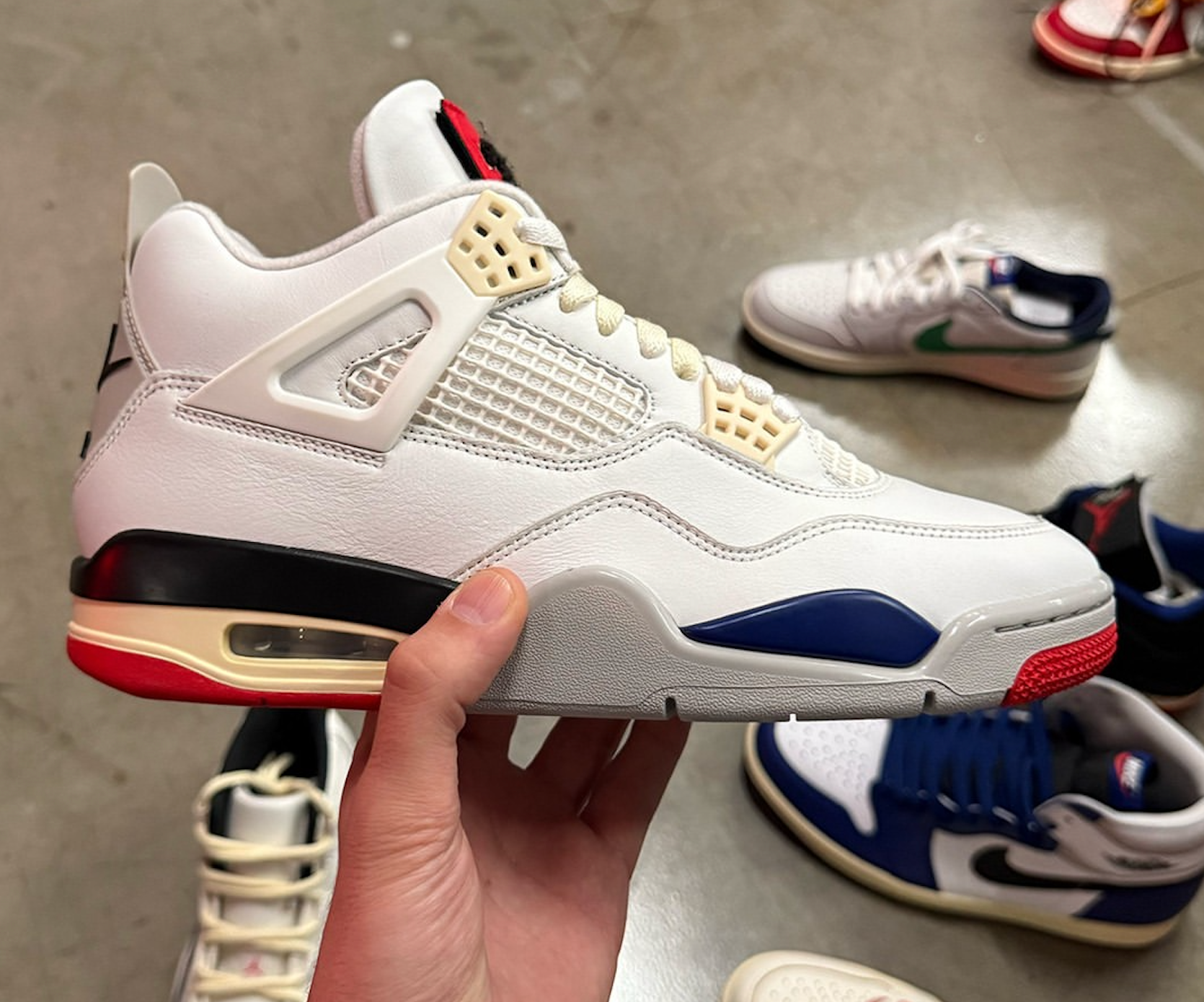 With the Air Jordan 4 "Rare Air" officially slated for a July 2025 release, we’re now getting a look at an unreleased sample that presents a slightly different take on the upcoming colorway, credits to Hypebeast via Instagram. This version sticks to a all-white leather upper and incorporates subtle aged accents and bold color blocking on the midsole — a nod to the original "Rare Air" aesthetic introduced decades ago.
