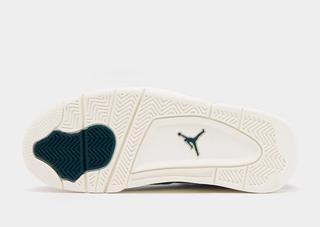 The Women's Jordan 4 RM "Oxidized Green" mirrors many elements of Sylvester’s design but introduces a distinct twist with a beige midsole and sole, offering a softer, more versatile approach to this bold colorway.