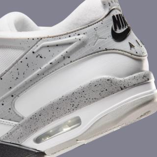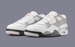 Officially clad in a "Summit White/Black/Matte Silver/Fire Red" color scheme, the newly-surfaced Air Jordan's nod to the past is undeniable. The color-blocking found across the sneaker allows for speckled grey panels to steal the spotlight along the profiles and at the Nike Air-branded plastic pieces at the spine. Vibrant red flair animates branding on the tongue and a section on the outsole, just as it did on the OG "White Cement" AJ4.