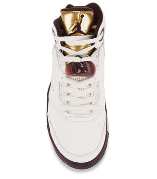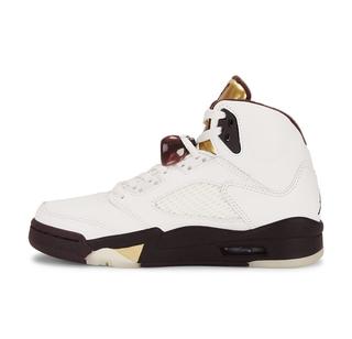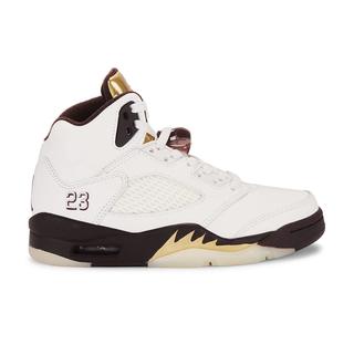 The Air Jordan 5 "Earth" is brought to life with earthy brown sock liners, midsole, and detailing, adding a grounded feel to the overall look. Complementing these elements are metallic gold accents, subtly integrated into the design to elevate the aesthetic with a touch of luxe. A stitched "23" appears on the lateral side, offering a nod to the iconic Jordan legacy, while the classic Jumpman logo graces the heel, finishing off this balanced and sophisticated design.