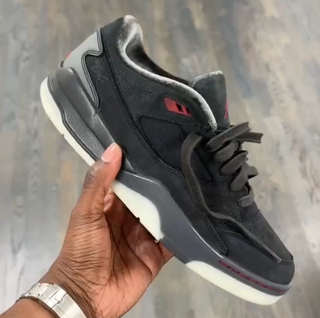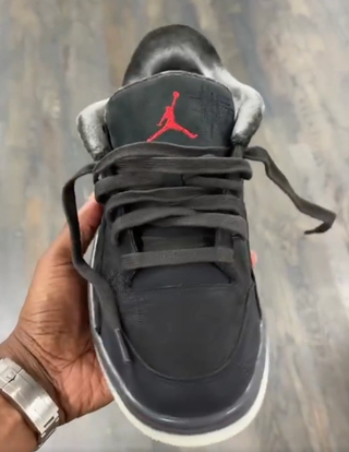 Crafted to be versatile and stylish, the Jordan Flight Court x Téla is designed for everyday wear. The low-top profile makes it easy to style for any occasion, while the combination of black, Off Noir, and Varsity Red gives the shoe a sophisticated and bold look. Featuring a mix of iconic Jumpman DNA and unique co-branding, the shoe also includes distressed accents for a fashion-forward touch. A standout design feature is the tear-away portion on the back of the shoe, allowing wearers to choose which logo to display, while Who Decides War’s signature darning technique is visible in high-wear areas, such as where creasing occurs.