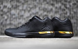 Luxury finishes make their way to the Air Jordan 31 next month, with this sexy AF combo of buttery Black tumbled leather and Metallic Gold accents.