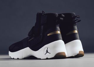 The Jordan Trunner LX High in Black and Metallic Gold available at select retailers noe for $130/
