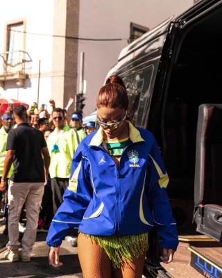 “Note”LUDMILLA wearing Brazil's 2026 Anthem Jacket. Photo via LUDMILLA.