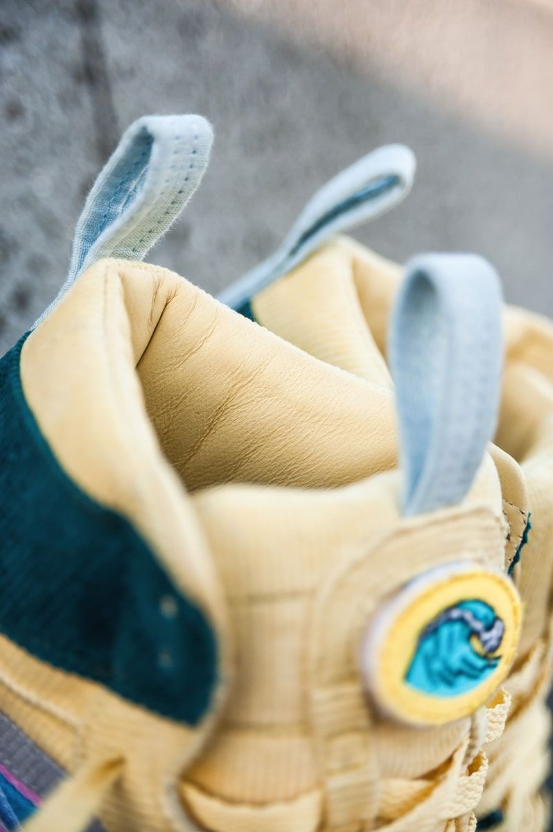 Wanting more than a standard panel-changing rendition onto the Air Jordan 1, the guys took the 97’s iconic flowing waves one step further — curving the waves from the toe box, to the midsection through to where traditionally the heel panel has been.