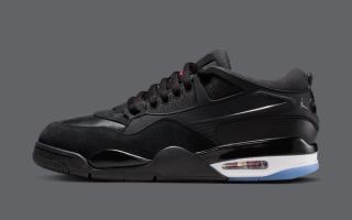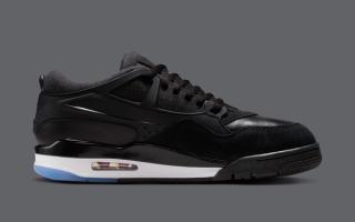The Air Jordan 4 RM “Bred” features an all-black upper, combining smooth leather with suede overlays and technical paneling that subtly nods to the Air Jordan 4 without directly retracing its lines. The familiar contrast comes underneath, where a crisp white midsole breaks up the dark palette before giving way to an icy blue outsole — a clear callback to the legendary Air Jordan 11 “Space Jam,” a silhouette set to return in 2026.