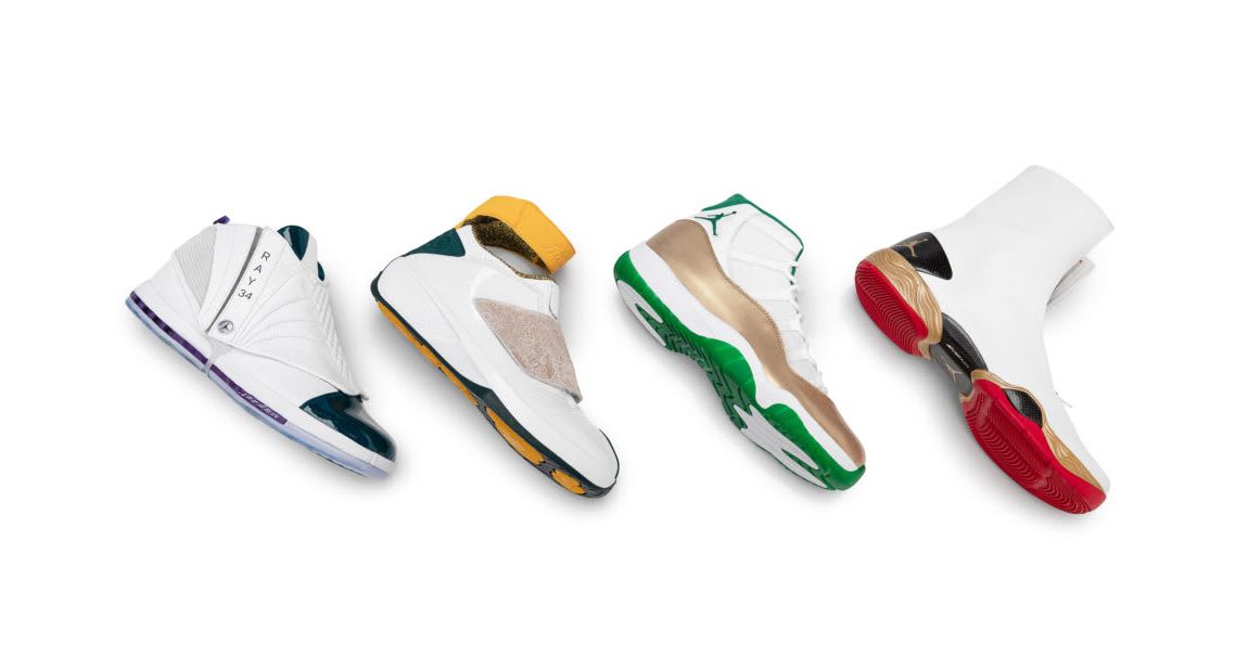 Some of the signature models featured in the pack include the Air Jordan 9, Air Jordan 11, Air Jordan 16, Air Jordan 20 and Air Jordan 28, all in PE colorways respective to Allen’s team at the time he wore them. The colorways are inspired by his early days with the Milwaukee Bucks and Seattle Supersonics, to championship seasons with the Boston Celtics and the Miami Heat. Each pair features Hall Of Fame branding seen on the sock liner, including the years Allen spent with the team on the inside tongue tag.
