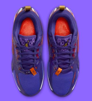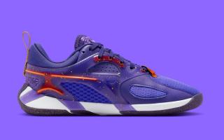 Ahead of the WNBA's All-Star Game in Indianapolis, the silhouette has emerged in a striking "Hyper Grape/Brilliant Orange/Court Purple/Metallic Gold" color scheme. While not an official project backed by the League, the decorative pair follows the same color palette used in the event's marketing material. A series of ornate embroidery appears throughout the textile base layer and tongue, bringing an elevated touch to the hoops-oriented model. Jumpman logos throughout the style opt for a shimmering metallic finish that ties the package together. According to an official product description acquired by Elden Monitors, the regal Heir Series has been internally dubbed "Royalty."