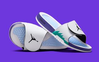 The Jordan Hydro 5 Slide is back in action, this time pairing up with the much-anticipated OG retro of the Air Jordan 5 "Grape."
