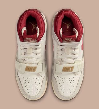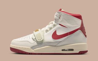 The Jordan Legacy 312 “Year of the Horse” blends elements from the Air Jordan 1, Air Jordan 3, and Air Alpha Force Low, staying true to the model’s mash-up DNA. This latest edition arrives dressed in a soft Sail and Cream base, accented by deep red overlays that nod to traditional Lunar New Year palettes. Subtle textural shifts appear across the upper, while the midfoot strap — a signature Legacy 312 detail — anchors the design visually and functionally.