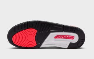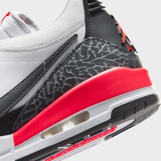 Everything on the Air Jordan-inspired model—developed with input from Chicago's Don C—sees a heritage-informed build. Mixed-materials construction across the upper is divvied up in a "White/Infrared 23/Black/Cool Grey" color scheme that nods to Nike, Inc. designs from the past. The pair's boldest hue animates branding on the vamp strap, spine, and tongue, while also landing right above the visible Air unit borrowed from the Air Jordan 3.