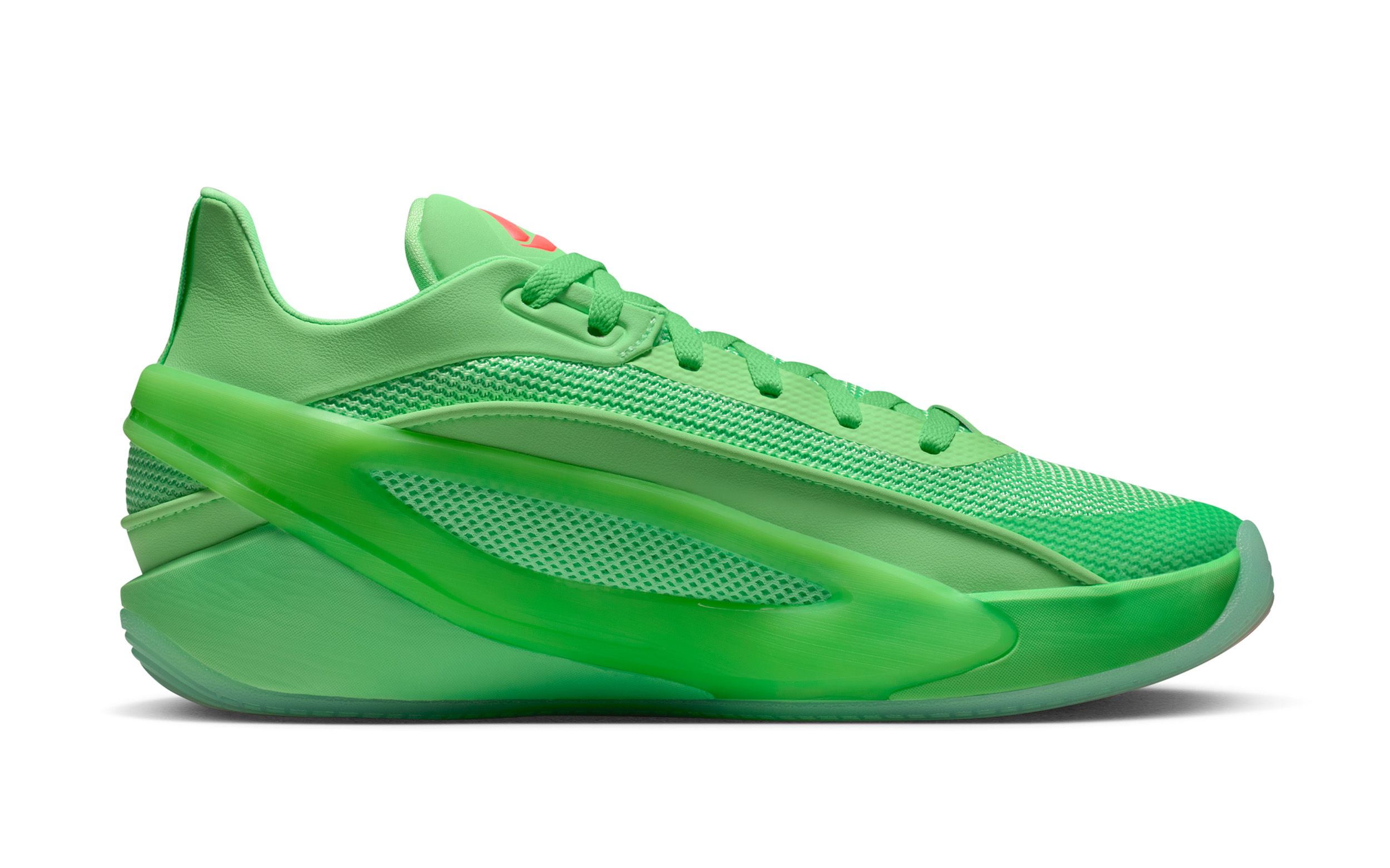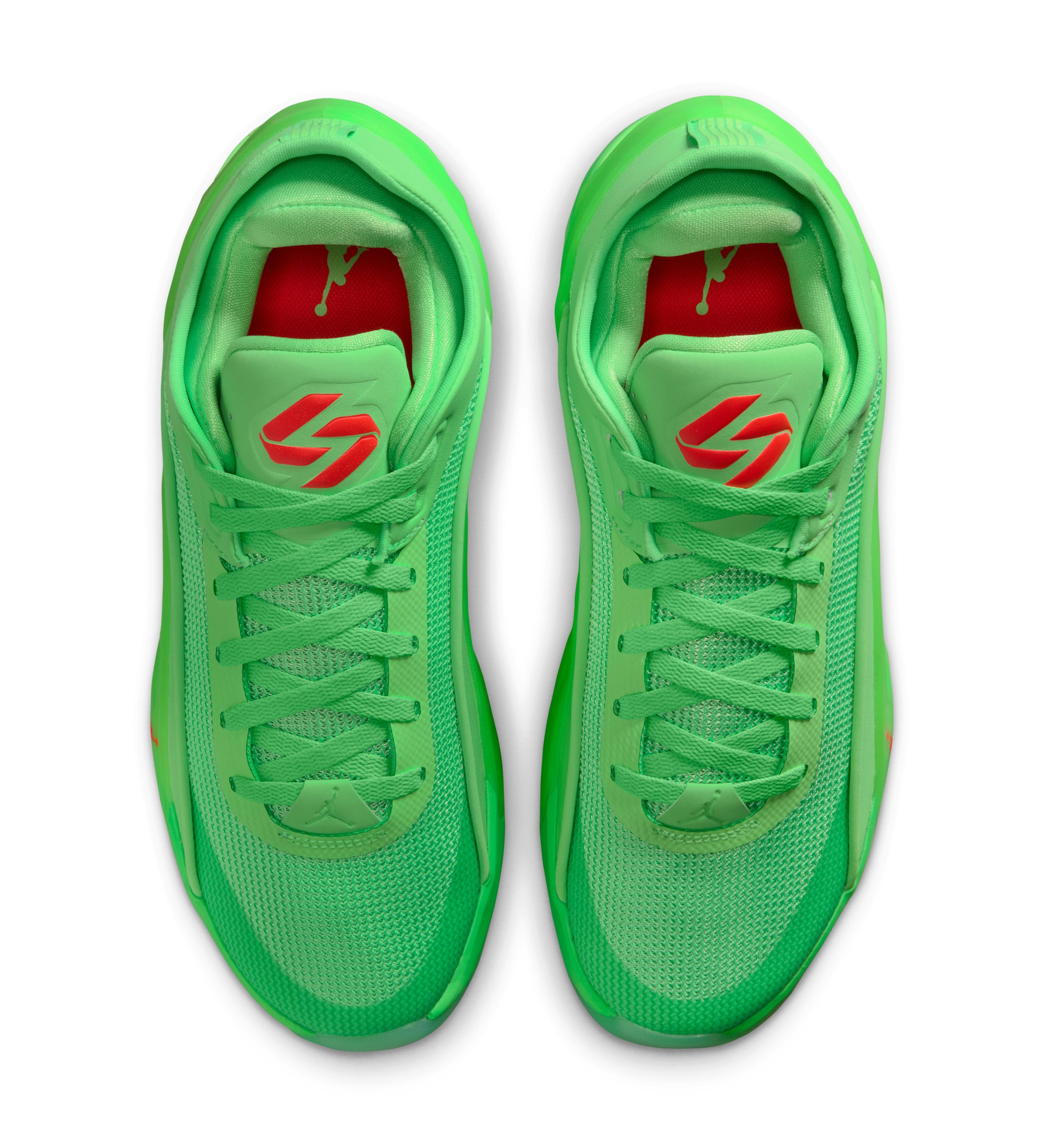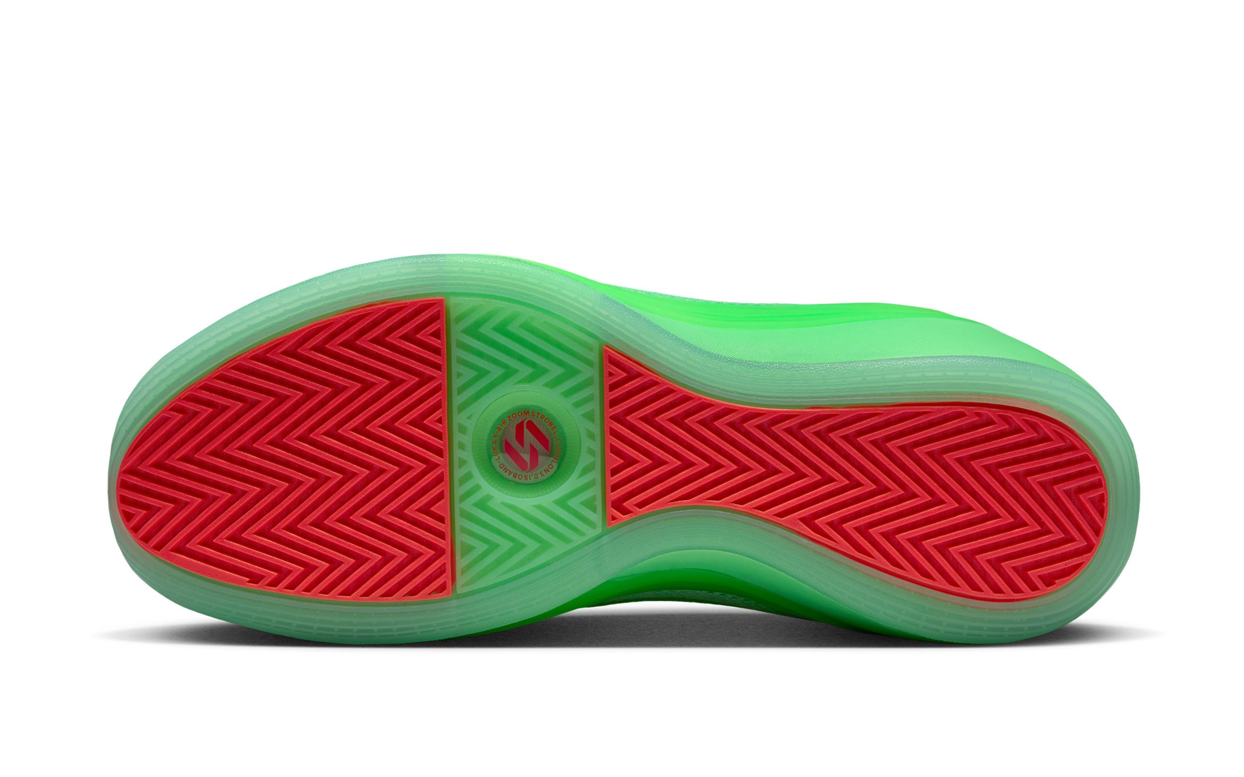 Jordan Luka 5 "Viper Edge" basketball shoe in a "Illusion Green/Infrared 23" color scheme.