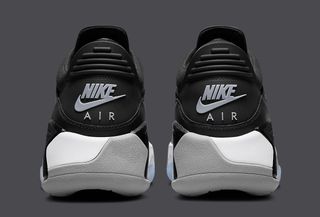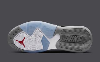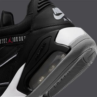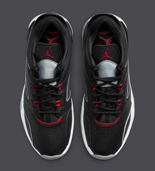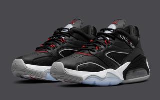 Once again we see a return of ballistic mesh uppers and premium leather overlays — both here set in black. the latter is trimmed with Cement Grey, as is the tongue, rear Nike Air branding, and outsole toe and heel. Select pops of red are placed throughout, hitting the tongue Jumpmen, eyestays, and vamp detail, and the pair is capped off by a clean white midsole and icy outsole pods underfoot.