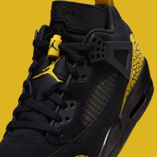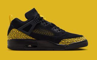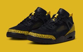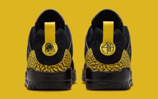 For its latest ensemble, the Jordan Spizike Low indulges in a "Black/Speed Yellow" color scheme that sees the bulk of its build opt for a stealthy finish. Elephant print around the forefoot and lower heel, as well as other design elements, however, interrupt in an eye-catching yellow that simultaneously evokes images of bumble bees and Pittsburgh colors.