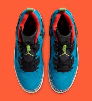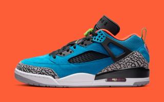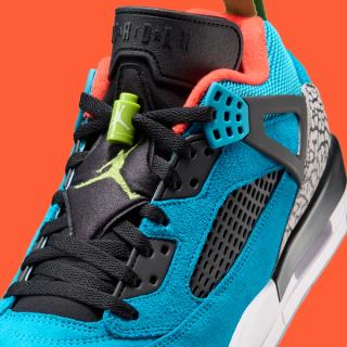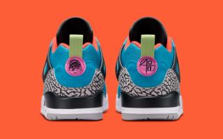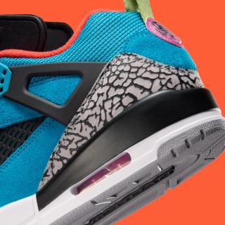 Despite the energetic palette, the construction stays true to the Spizike formula. The hybrid design blends elements pulled from multiple Air Jordan classics, including Air Jordan 3-inspired elephant print and Air Jordan 5 mesh paneling. A visible Air unit in the heel anchors the midsole, maintaining the model’s familiar comfort and performance foundation.