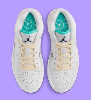 But it's the contemporary shades that set this release apart. Using fresh greens and bold magentas at the liners, soles, forefoot teeth, and dual-stitched Swooshes infuse the design with a lively modern touch. This double-thread effect carries through to the tongue Jumpman motif, creating a harmonious connection between the various elements of the shoe. Adding a final touch of flair, unique medial tags, and graphic insoles complete the colorful design.