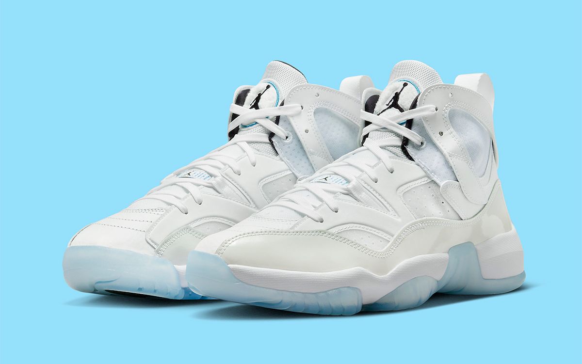 Now only does the silhouette usher in elements of the Air Jordan 6 thru 14 (minus the 10), it’s also been prolific at borrowing iconic colorways from these models and repurposing them for the modern market. The next, this Jordan Two Trey “Legend Blue” looks to the OG “Columbia” colorway of the Air Jordan 11 (later released as the “Legend Blue”) — a sneaker made famous by Mike’s 1996 NBA All-Star appearance. Here, you’ll note a carbon-copy of the colorway, with all-white uppers and mesh tongues, white patent leather overlays, and ice-blue outsoles, too. It’s also met with OG-inspired black liners and branding flushed throughout.