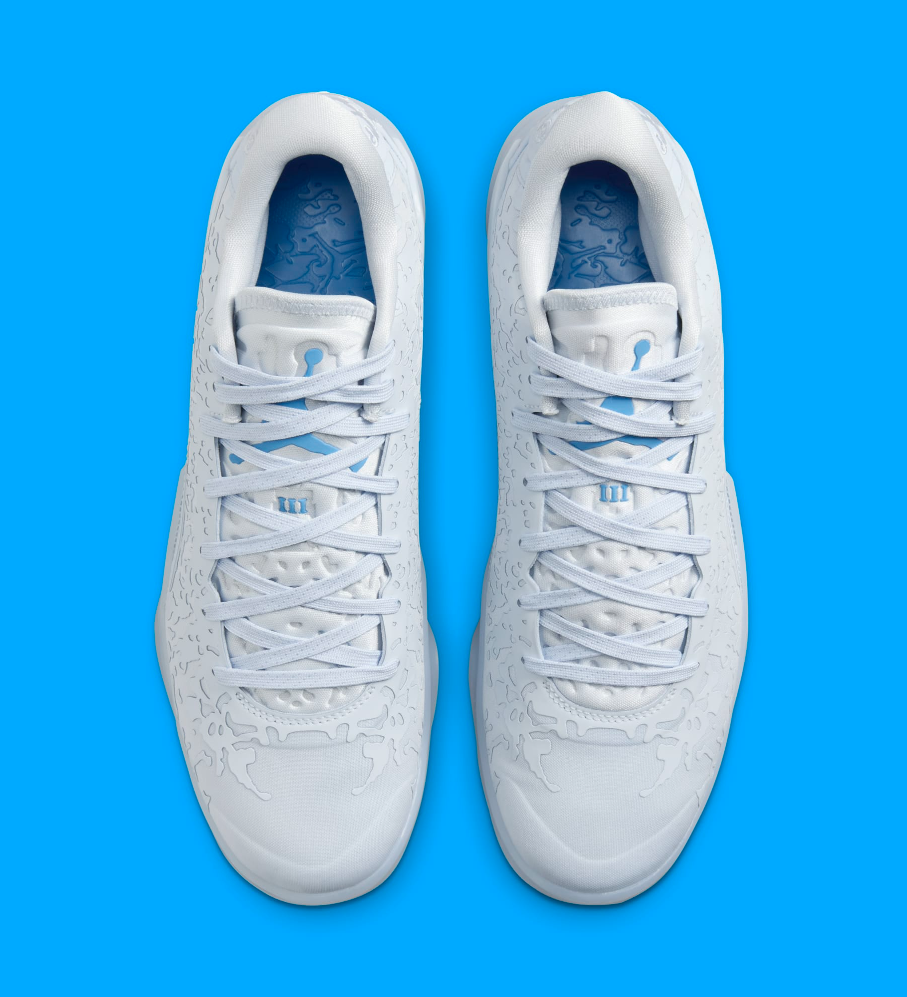 The sneaker is divided visually, with the upper half presenting a deep navy blue that fades into a vibrant university blue on the lower section, symbolizing the transition from night sky to dawn. This color transition not only adds a unique aesthetic touch but also emphasizes the agility and power that Zion brings to the game.
