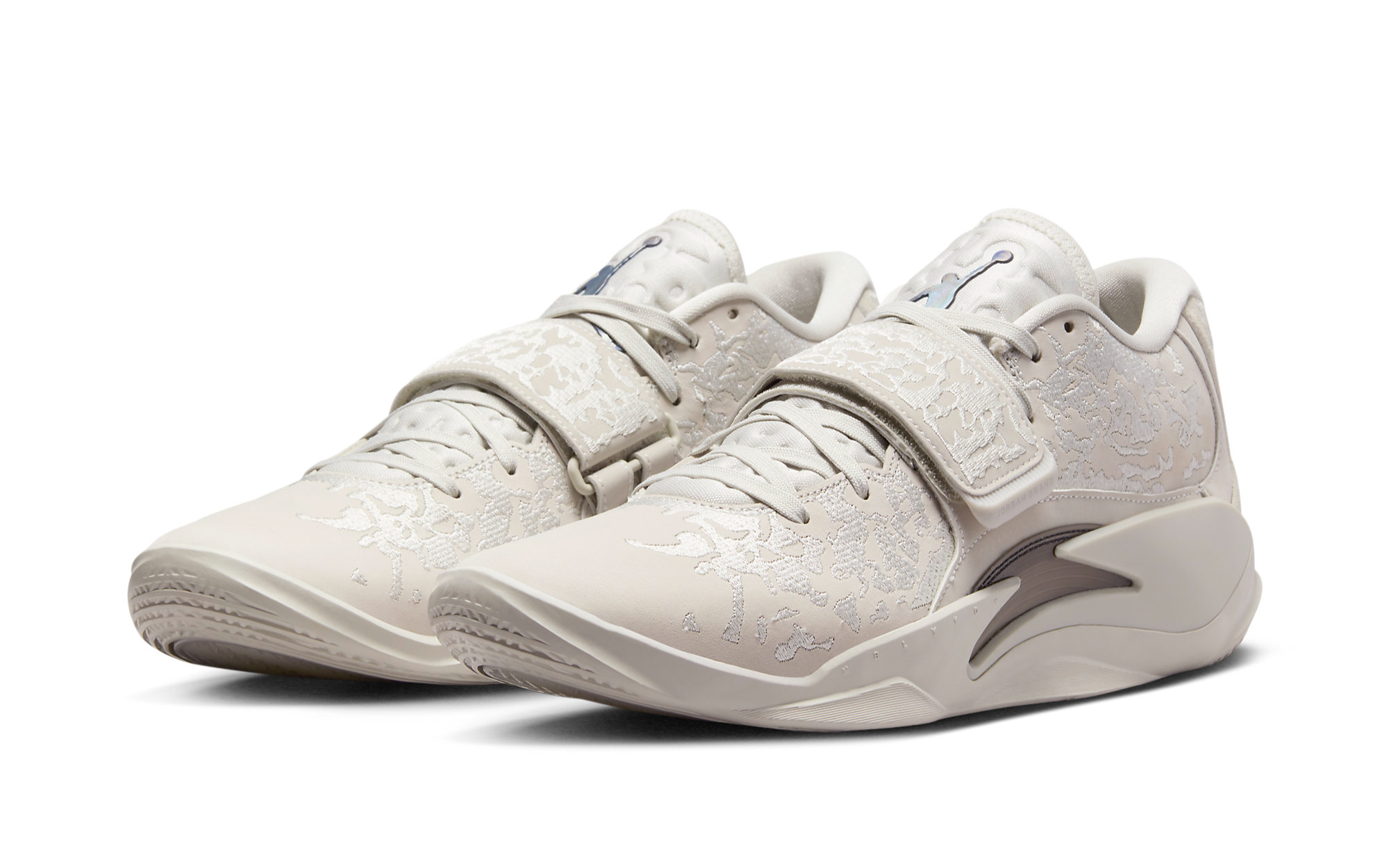 This innovative strap is not just functional but also adds a unique aesthetic element to the sneaker, complemented by subtle branding and Zion's personal logo. The "Light Bone" palette is accented with hints of contrasting colors on the Jumpman logo and the outsole, adding depth and intrigue to the overall design.