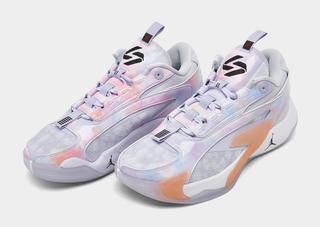 Given the "Nebula" moniker, this new colorway is characterized by a vibrant fusion of pastels. The Jordan Luka 2 takes a slightly divergent path from its predecessor, with a more pronounced use of lavender shades. Embracing a playful multi-color marbling effect on its radiant overlays, the new design brings an iridescent finish, enhancing its visual appeal.
