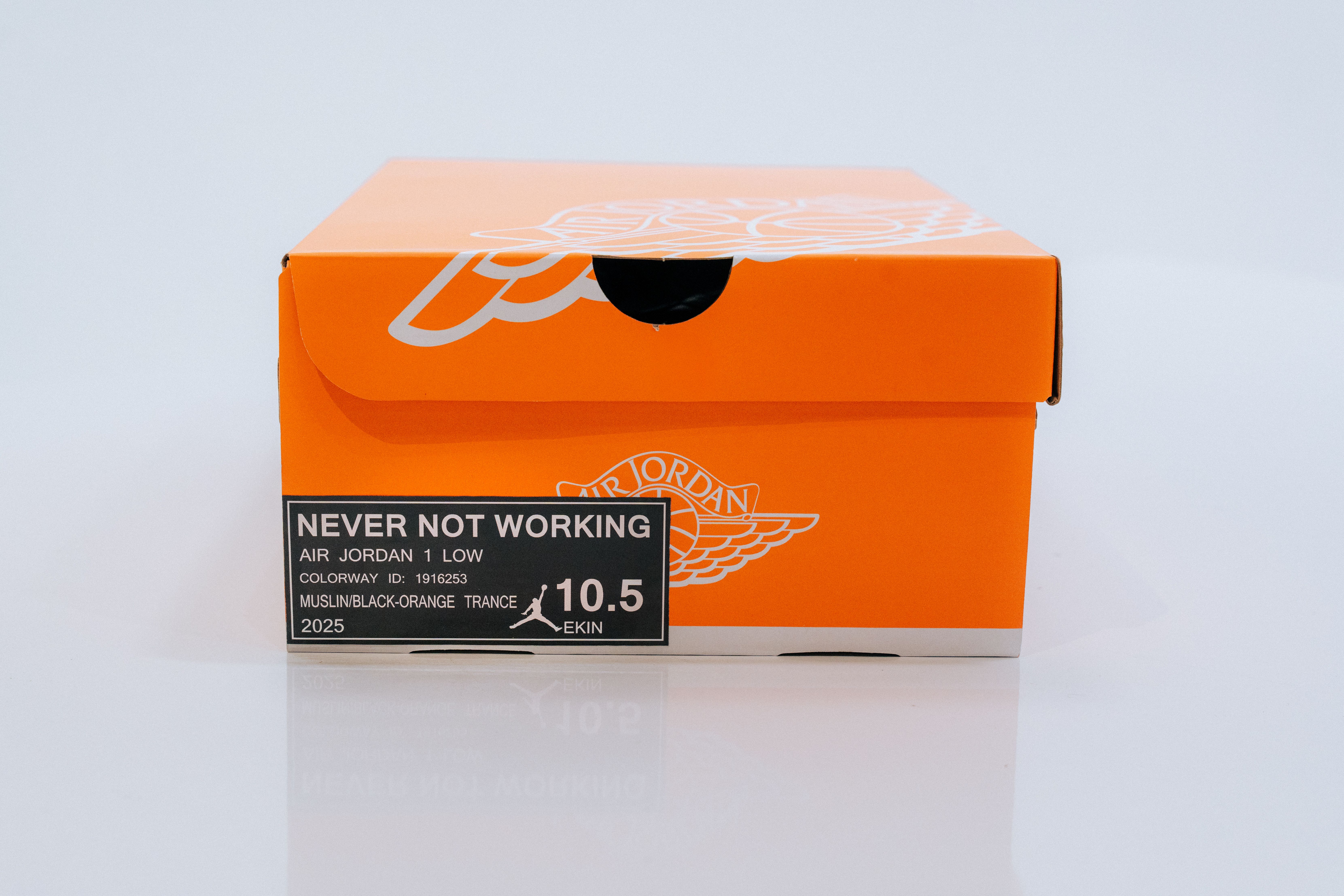 Limited to just 200 individually numbered pairs, the NEVER NOT WORKING Air Jordan 1 Low is among the most exclusive Jordan Brand releases ever produced. The color story pulls from a dusk-to-dawn palette, symbolizing the long hours and behind-the-scenes grind that define EKIN life. Faded EKIN Orange accents nod to vintage Nike shoeboxes, while distressed leather Swooshes and a sail midsole add a worn-in, lived-with character that mirrors years spent on the road telling Nike’s story.