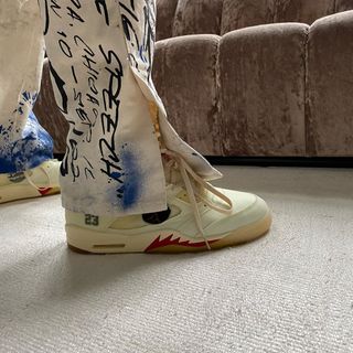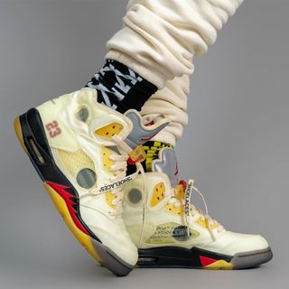 OG Post 01.03.20 // The Yellow Travis Scott Air Jordan 6 rumor may have been officially quashed yesterday by Jodan Brand, but it hasn’t deterred whispers of another big-name Jordan collaboration circulating around, with word of a “Cream” OFF-WHITE x Air Jordan 5 spreading through social media like wildfire.