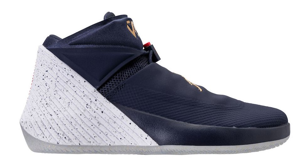 The heartfelt colorway comes draped in their high school team colors of midnight navy, metallic gold and white and includes both Westbrook’s and Barrs’ numbers outsole. For the ultimate personal touch, the initials “KB3” on the tongue in Westbrook’s own handwriting.