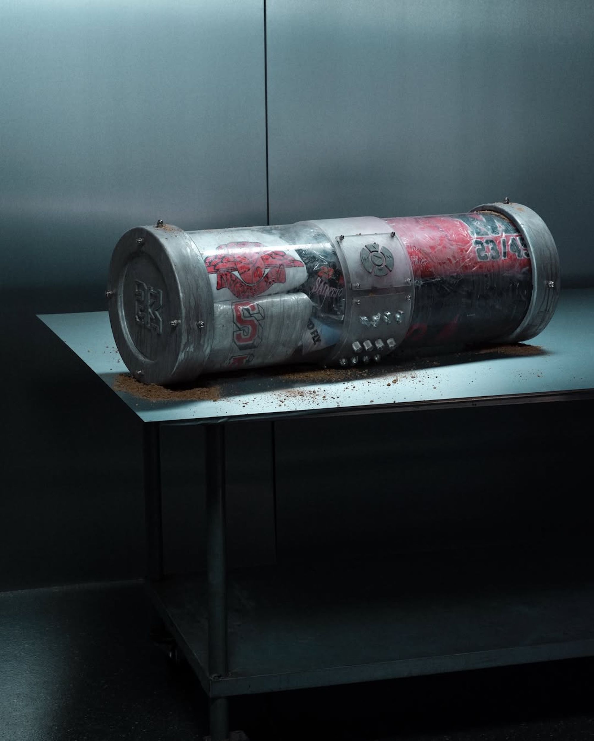Dewitt and Hosokawa have also brought their luxury take on vintage to six other items—including two sweatsuit sets, graphic t-shirt, and cap. Red, white, and black tones are prevalent on accompanying designs, which also center on M.J.'s jersey numbers. Wings logos and "SAINT" details round out the designs.