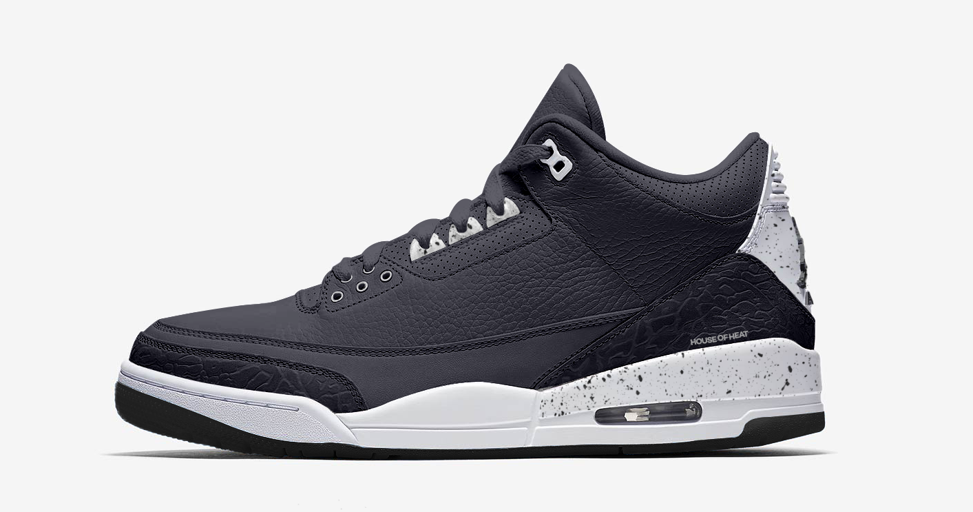 The Oreo colorway had made it’s mark on the Jordan 4, 5 and 6, and you’ll have to search far and wide to find someone who doesn’t love at least one of them. So, in the sneaker’s 30th anniversary year, we thought we’d bring the classic colorway to life on the Air Jordan 3.