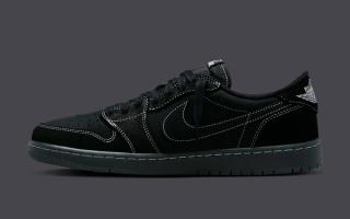 Tipped for a December 15th release will arrive in a mix of black and off-white, which is consistent with long-winded rumors of a second Air Jordan 1 Low OG release for the year. Here, La Flame has opted for a construction entirely in black nubuck and suede, with contrast stitching in off-white “Phantom” thread throughout. Sole units are served up with the same fate, as an all-black unit is tacked on with white stitching. There’s more monochrome threadwork in the rear, with Jordan Wings and a special insect motif that serves as a tribute to his daughter, Stormi. A pop of rich red sits at the Travis Scott-branded tongues, with a trio of included laces — red, houndstooth, and black — completing the design.