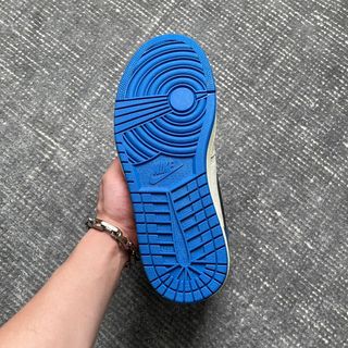 Update 03.10.21 First looks at a suspected retail sample of the Travis Scott x Fragment x Air Jordan 1 High has arrived via @wavegod_thelegend and @fxxkvlog. Though the pair is incomplete, info provided from the source indicates that toes will boast a royal blue, while forefoot overlays arrive tonal to the mid panels white. In the rear, you can expect to see a black collar with overlays of Fragment’s famous blue leather featuring alternating Cactus Jack and Frag stamps in the rear. For aficionados of the Air Jordan 1, you will notice a strong resemblance to the mythical Royal/White sample from 1985 (pictured just below), save the color and placement of the Swoosh. We’ve mocked up the pair for a better reference, but you can also check the first looks out here below.