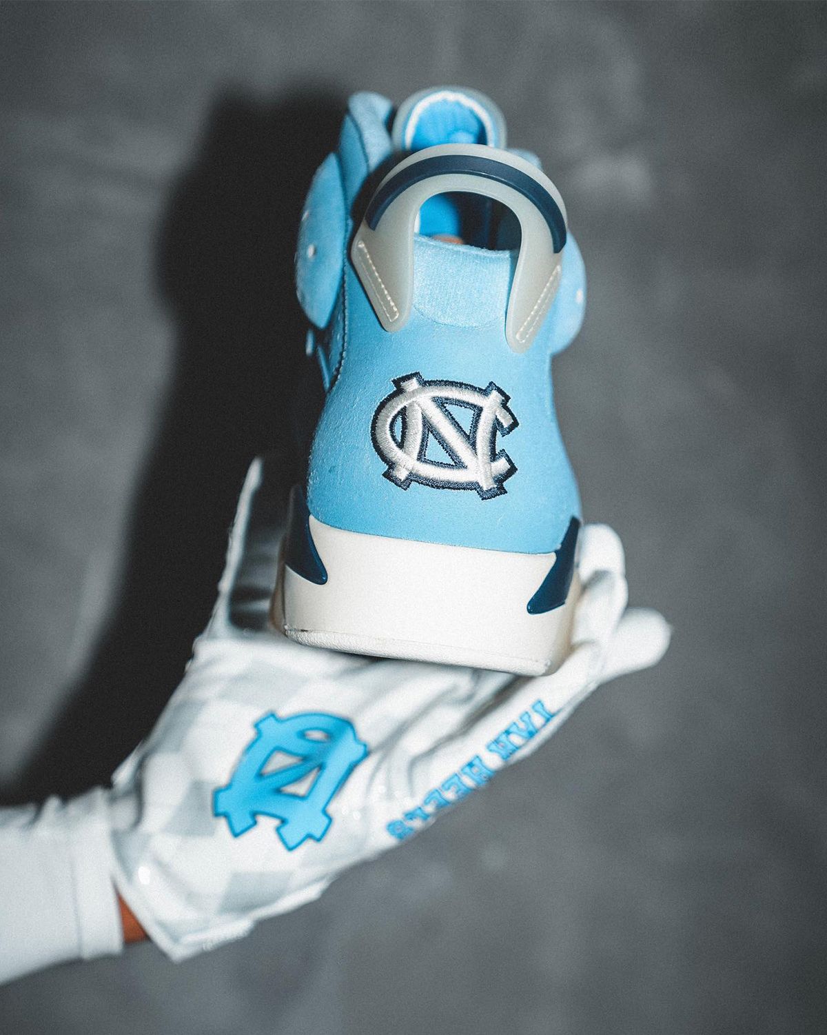 Take in a detailed look at the pair below courtesy of UNC Football, and expect to see a slew of other Jordan Brand colleges unveil their 2022 Air Jordan 6 PEs soon.