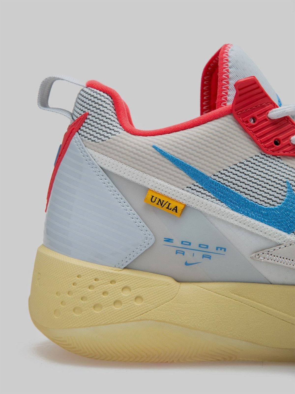 GOAT. The latter, revealed for the first time, is revealed with a soft pink mesh and suede upper, red mesh collars and blue liners and rear tabs. Underfoot you’ll find an identical sole unit to the widespread release, with elements like the uncut wings, folded tongues, and signature Union tags all arriving on par with the black pair.