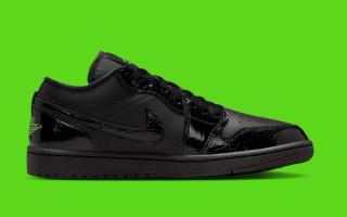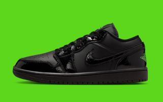 Recently, an Air Jordan 1 Low appeared in a "Black/Black/Black/Scream Green" color scheme. The two-tone style evokes images of 2005's "Altitude" Air Jordan 13, a pair that helped build Team Jumpman's roster post-Michael Jordan's final retirement. What's curious about the shorter offering, however, is that it features textured patent leather panels around the forefoot and lower heel; along the tongue; and via profile swooshes.