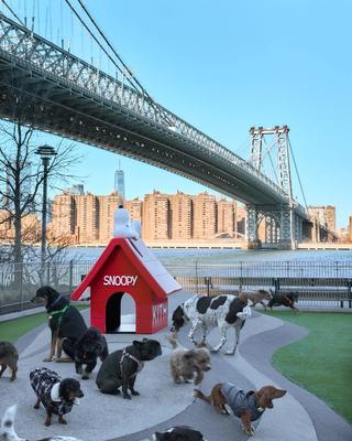 The experience brings the spirit of Peanuts to the heart of NYC, offering an interactive space where dogs can run, play, and pose in and around the iconic red doghouse—reimagined through Kith’s design lens. It's a playful prelude to the highly anticipated Kith for Peanuts 75th Anniversary collection, which blends the heritage of Charles M. Schulz’s timeless characters with Kith’s elevated streetwear aesthetic.