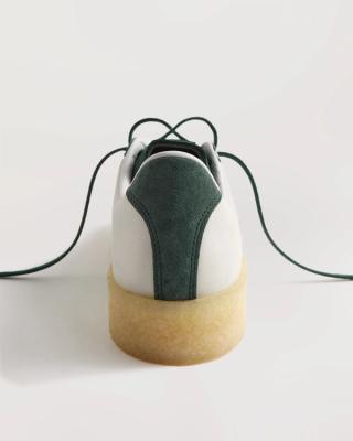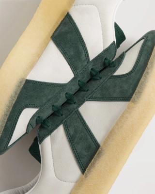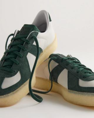 A standout feature of this collection is the 8th St BW Army by Ronnie Fieg for Adidas Originals & Clarks Originals. This shoe is a unique fusion of an archival adidas silhouette from the 1970s, the BW Army, with Clarks’ iconic crepe outsole, demonstrating a seamless blend of two classic footwear styles. The model is color-blocked and constructed from nubuck leather with suede overlays, prominently featuring the vibrant Vitality green color that ties back to the collection's theme.