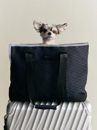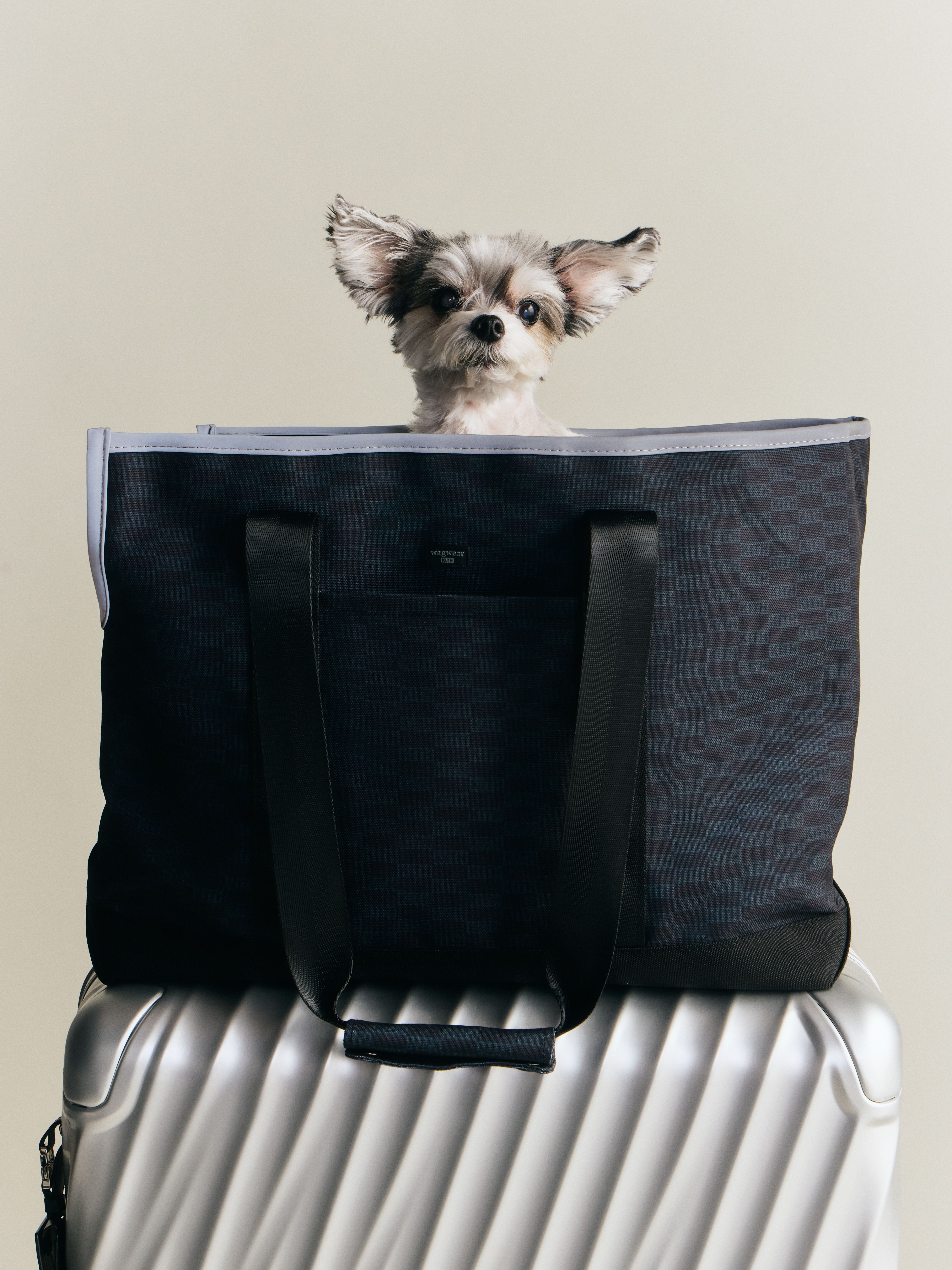 For smaller breeds, the Zipper Tote Dog Carrier introduces a more premium travel option. Constructed from tear-resistant, monogrammed fabric, the carrier includes a water-resistant lining, padded straps, and a built-in safety leash. It’s offered in neutral tones pulled from the Kith palette, including black and Sandrift.