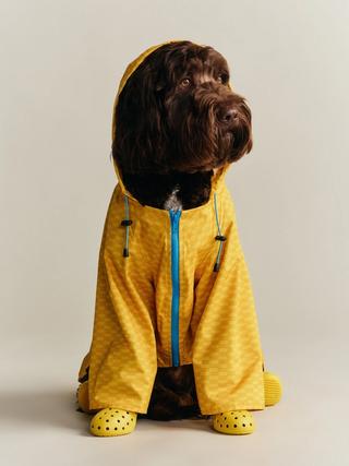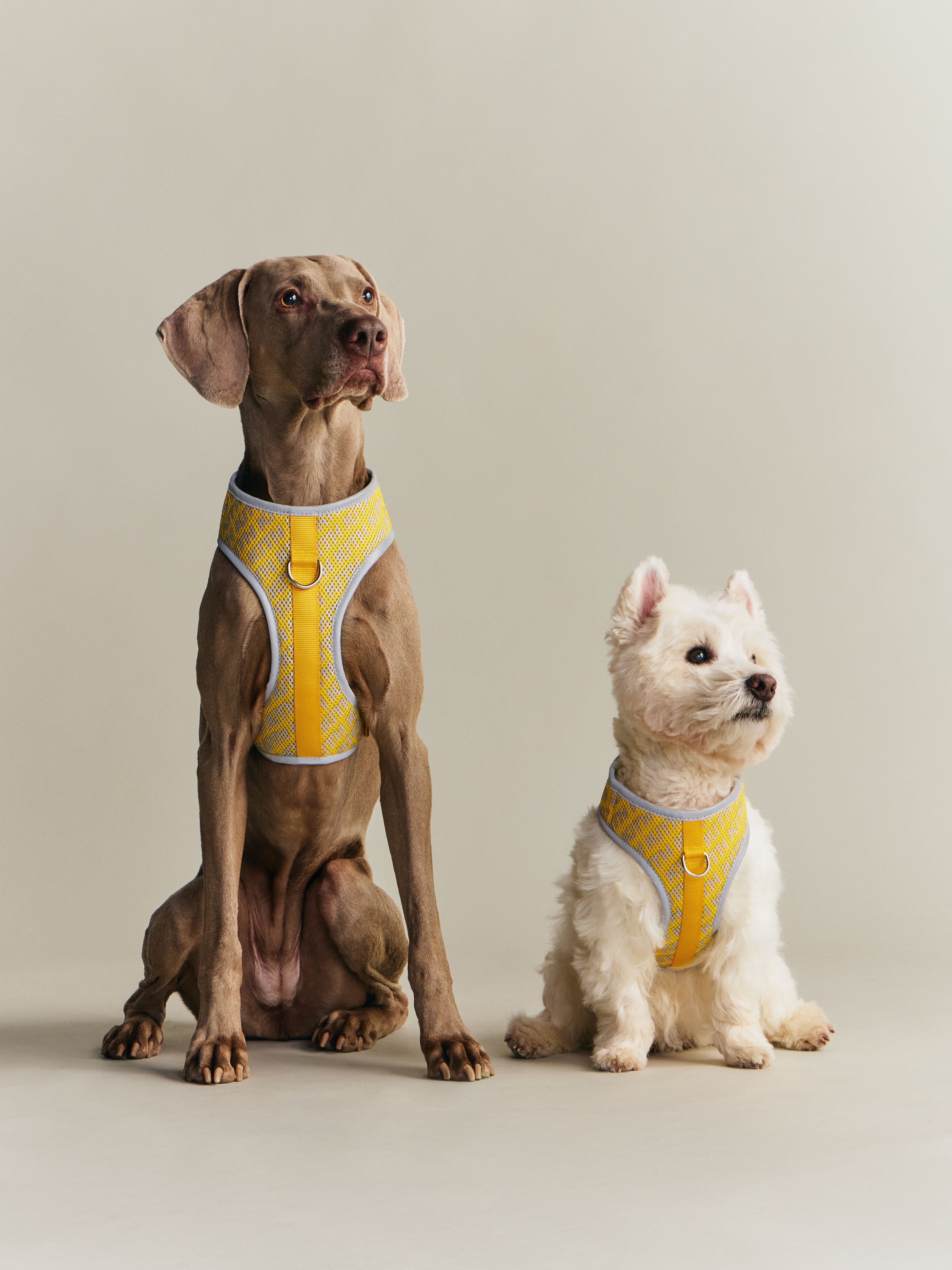 Footwear also plays a role in the offering with wagwear’s well-known WagWellies Mojave boots. Designed for warmer conditions, the slip-on silhouette protects paws from hot pavement while maintaining airflow through perforated construction. The boots arrive in classic black and a color-blocked yellow option that ties into the broader collection.