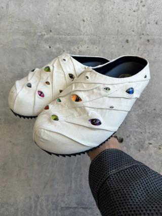 This collaboration between Kitowares and ESENES delivers a delightfully eerie twist on traditional mules. Dubbed the Mummy Mules, these shoes embrace Kitowares' eccentric design approach, combined with ESENES' iconic eyeball insignia for a look that's anything but tame.