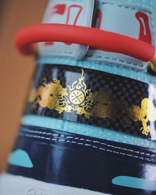 Serving as a follow up to last year’s celebratory green and black Way of Wade 6, this years’ WoW 7 gets a little more colorful, sporting a traditionally vibrant palate which mimics that of one of the racing boats — even to the point of including gushing waves at the midsole’s heel. Needless to say, the pair is abundant in special motifs, etchings and detailing — all of which I can’t understand, but I bet it’s relevant AF.