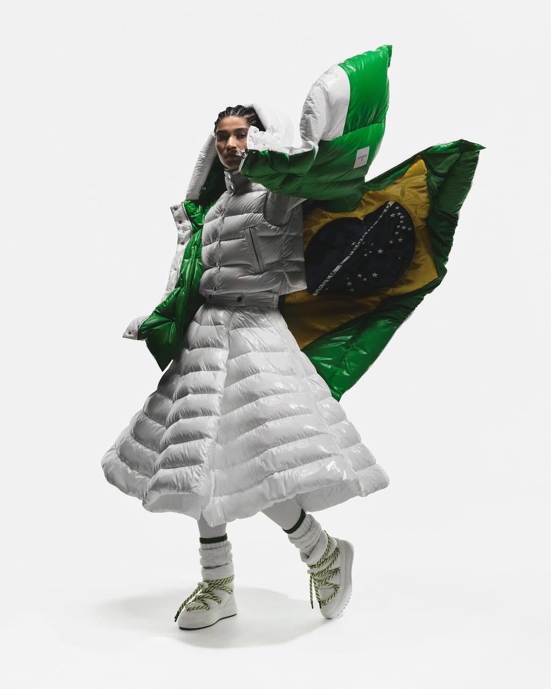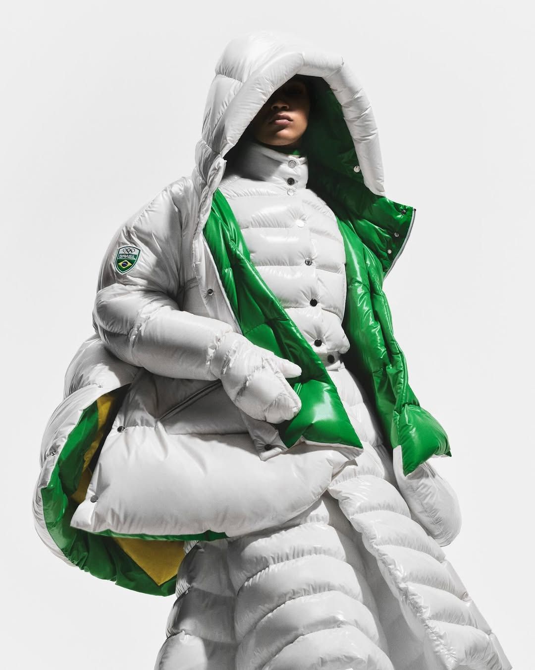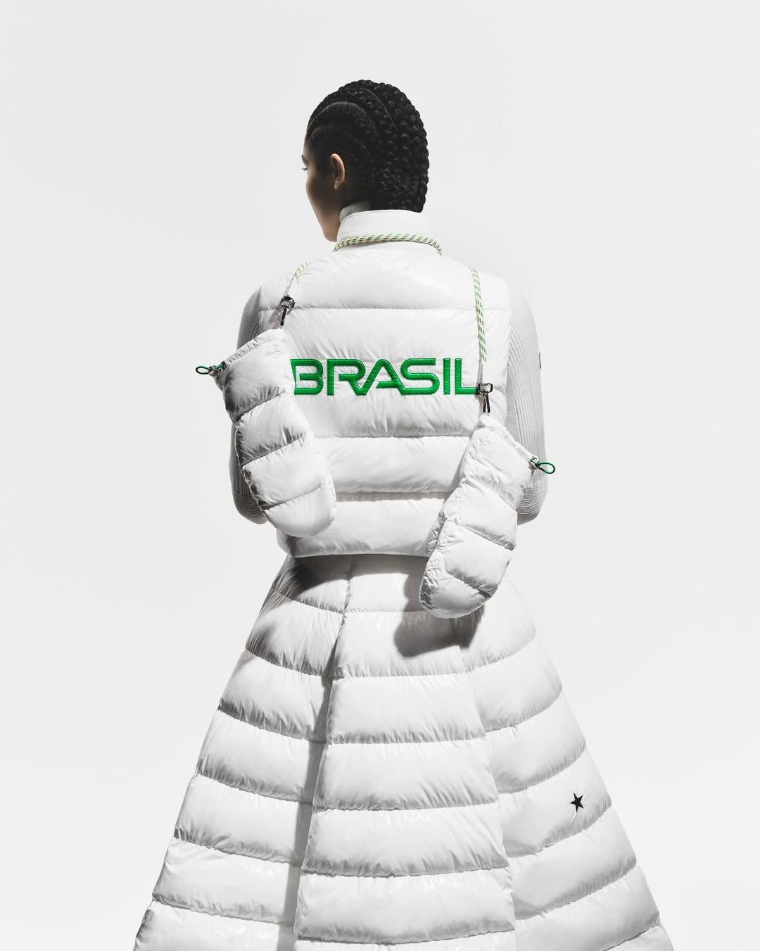 Metsavaht’s involvement brings an authentic layer to the collaboration. Known for his long-standing relationship with outdoor culture and winter sports, the designer helped shape silhouettes that balance ceremonial presence with technical intent. White, green, and navy palettes reference Brazil’s national colors, while insulated constructions, sculpted volumes, and modular outer layers reflect Moncler’s mountain DNA.
