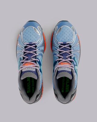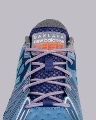 Color-wise, the collaboration follows the familiar Baklava script: a clash of cool blues, mint-green branding, neon accents, and warm orange hits at the eyelets and heel. Despite the bold touches, the foundation leans surprisingly neutral, with off-white tones and deep grey panels anchoring the arrangement. A second style unveiled in early January 2026 takes on a more neutral look, although hits of eye-catching oranger and yellow make an appearance. Thick boot-style laces and “BAKLAVA New Balance” tongue tags finish both options—details that fans of Bronson’s 990v6 pairs will immediately recognize.