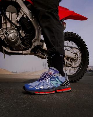 The 1890 itself is an unmistakable product of NB’s mid-2000s design language—aggressive lines, layered uppers, and performance-first engineering. Bronson’s version leans into that identity while dialing up the eccentric palette he’s become known for. Rounded thermoplastic overlays stretch across an open-knit mesh base, while a full-length ABZORB platform with squared cushioning pods delivers the chunky, propulsive feel the era was famous for. A triangular heel counter at the rear adds structure, contrast, and the kind of visual punch Bronson rarely avoids.