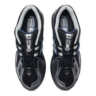 The upper maintains the lightweight, breathable mesh that defines the 1906R lineup, but the mood shifts dramatically. Black and silver tones take the lead, representing “night” and “moonlight,” directly contrasting the bright white-and-gold M1906RA, which symbolized “morning” and “sun.” The reversed palette creates a darker, more atmospheric version of the shoe while still preserving its performance-driven structure.